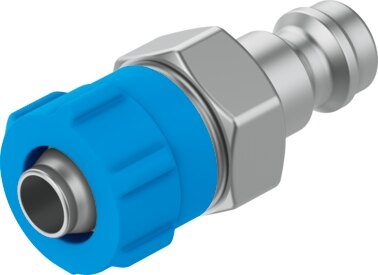 Pneumatic connection, port 1 For tubing outside diameter of 6 mm For barbed fitting I.D. 4 mm with union nut