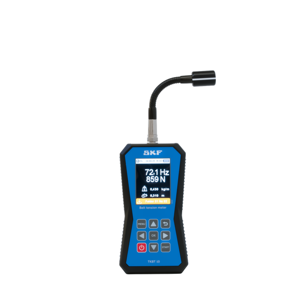 The belt tension meter is a portable and user-friendly instrument designed to ensure optimal belt performance and longevity. It enables precise measurement of belt natural frequency and belt tension in various belt types, including V-belts, toothed belts, ribbed belts, drive belts, and conveyor belts. With its flexible neck sensor and optional accessories, the instrument is ideal for use in belt maintenance tasks.